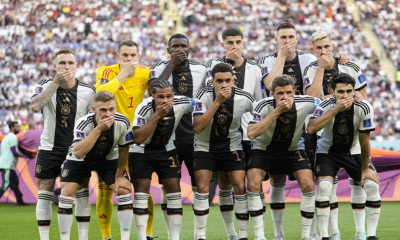 كمم لاعبو المنتخب الألماني أفواههم خلال الصورة الرسمية قبيل مباراتهم مع اليابان، في افتتاح منافسات المجموعة الخامسة بمونديال قطر 2022، احتجاجا على رفض الاتحاد الدولي لكرة...