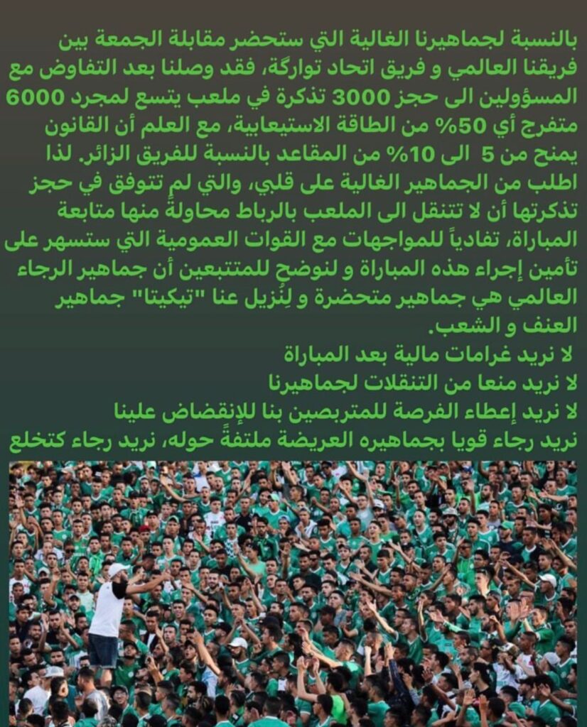 البدراوي مخاطبا “شعب” الرجاء: لا نريد إعطاء الفرصة للمتربصين