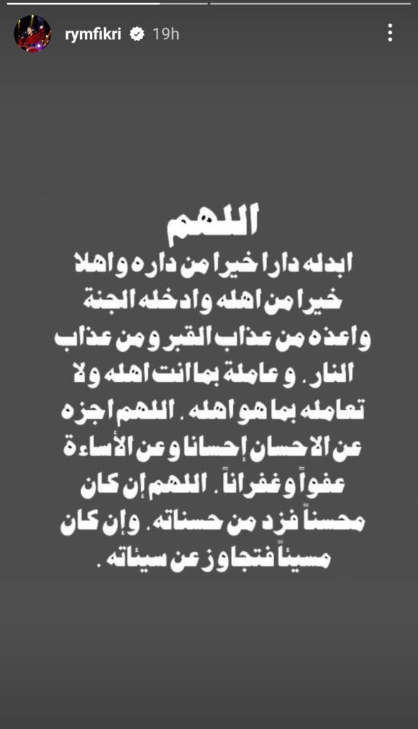 “الصورة “بعد الهجوم عليها من طرف عائلته.. ريم فكري تدعوا لروح زوجها المغدور