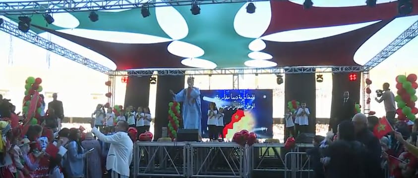 وقاد هذه الاحتفالية الوطنية الكبرى التي حضرها أكثر من 35 ألف طفلة وطفل مغاربة، الإعلامي ومقدم برنامج “أطفال على بال” على القناة الأولى سعيد بيبو في إطار قافلة المواطنة، حيث غنوا الأطفال بشكل جماعي أغاني وطنية مختلفة أبرزها أغنيتي “نداء الحسن” و”العيون عينيا” وأغاني أخرى، حاملين الشعار الخالد “المغرب في صحرائه والصحراء في مغربها”.