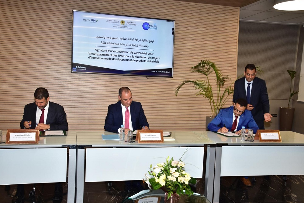 في إطار تعزيز دعم الدولة للمقاولات الصغيرة جدا، والصغرى، والمتوسطة، وقع كل من “رياض مزور” وزير الصناعة والتجارة، والمدير العام للوكالة الوطنية للنهوض بالمقاولة الصغرى، والمتوسطة “Maroc PME”، ورئيس المؤسسة المغربية للعلوم المتقدمة، والإبداع والبحث العلمي “MASCIR”، اتفاقية شراكة لمواكبة هذه المقاولات، ومساعدتها على إنجاز مشاريعها الخاصة في مناخ من البحث العلمي والتطور التكنولوجي، والابتكار الصناعي.
