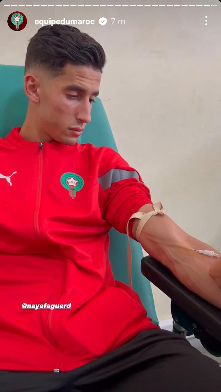 حيث شوهد لاعبو المنتخب الوطني المغربي رفقة الإطار الوطني وليد الركراكي، قبل قليل، و هم يتوجهون إلى أحد مراكز تحاقن الدم بمدينة أكادير، استجابة للنداء من أجل للتبرع بالدم لصالح الجرحى الذين يتواجدون في مختلف المستشفيات بالمملكة.