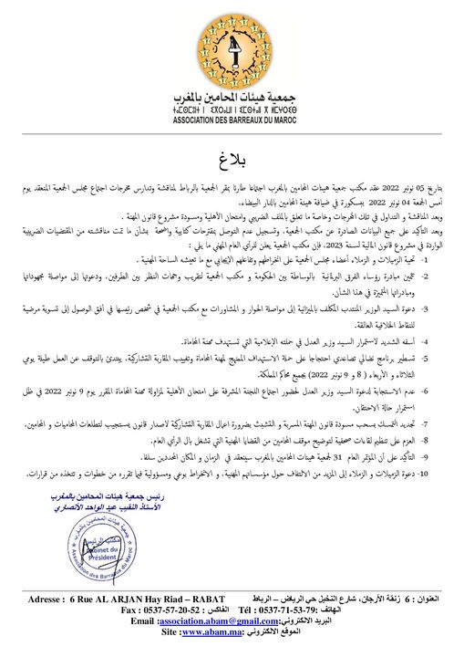 جمعية هيئات المحامين تحتج يومي الثلاثاء والأربعاء وتقاطع وهبي