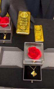 شاهد.. فستان مصنوع من الذهب بمناسبة عيد الحب يثير الجدل في الكويت