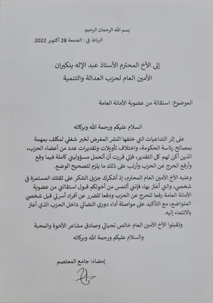 عاجل.. المعتصم نائب ابن كيران يستقيل من قيادة PJD