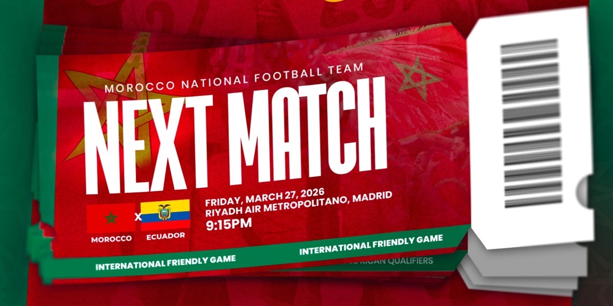 أعلنت اللجنة المنظمة للمباراة الودية التي ستجمع بين المنتخب الوطني بنظيره منتخب الإكوادور، عن انطلاق عملية بيع تذاكر هذه المقابلة انطلاقى من أمس الجمعة 13 فبراير 2026، على الساعة السادسة مساء، حيث تم تحديد أثمنتها ما بين 40 و100 يورو .