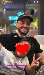 و نشرت مونية سايس صورة عبر خصية “ستوري” لحسابها الشخصي على موقع التواصل الاجتماعي “إنستغرام”، جمعة رومان سايس بنجله الوحيد و كتبت عليها : “اشتقنا لك، ولكن لا نتمنى عودتك سريعا”.