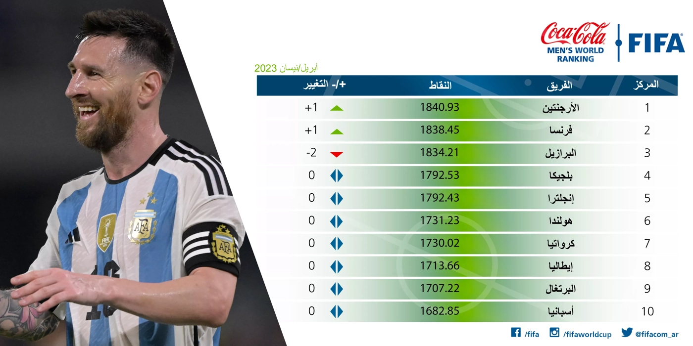 تصنيف فيفا: الأرجنتين في الصدارة للمرة الأولى و المغرب في المرتبة 11