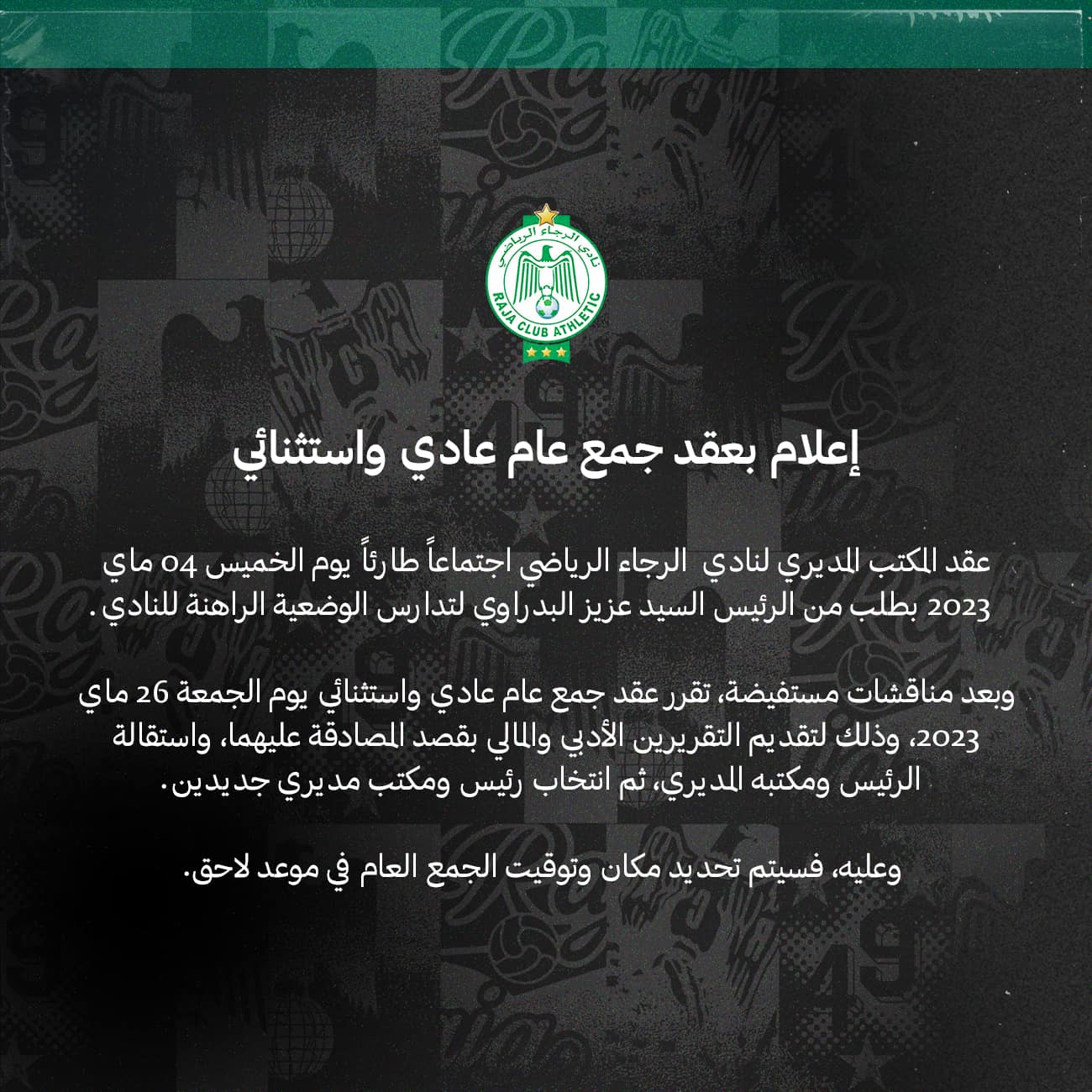 رسميا .. عزيز البدراوي يقرر الرحيل عن الرجاء