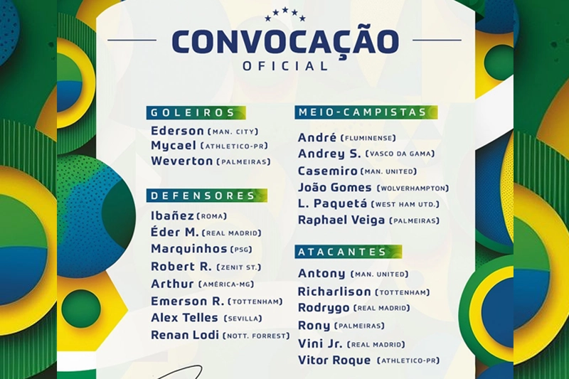 كما شهدت اللائحة غياب غابرييل مارتينيلي، بيدرو، رافينيا، وكذا الحارس أليسون، فضلا عن استدعاء تسعة لاعبين لأول مرة، معظمهم من الشباب.